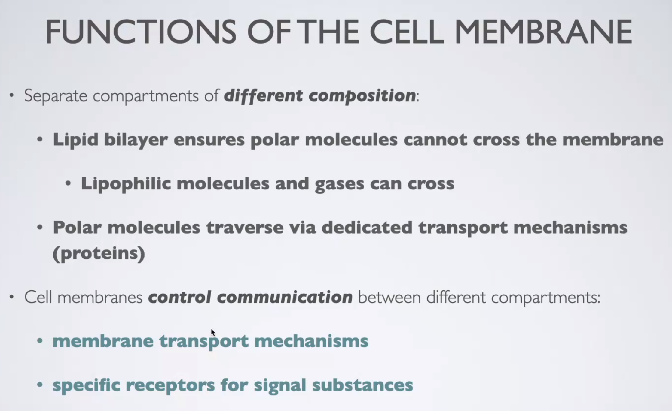 - ensures polar molecules cannot cross