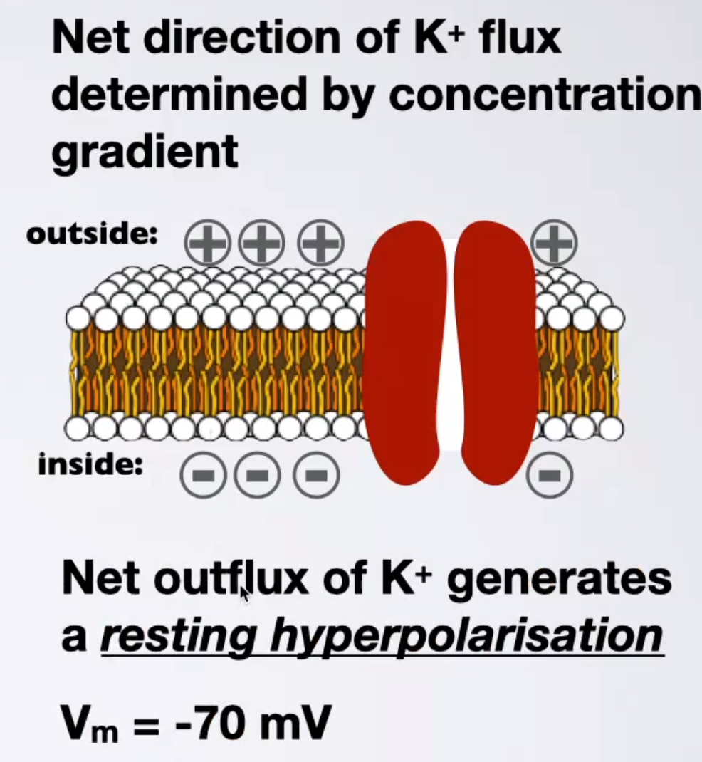 at rest permeable to K+ but not Na+